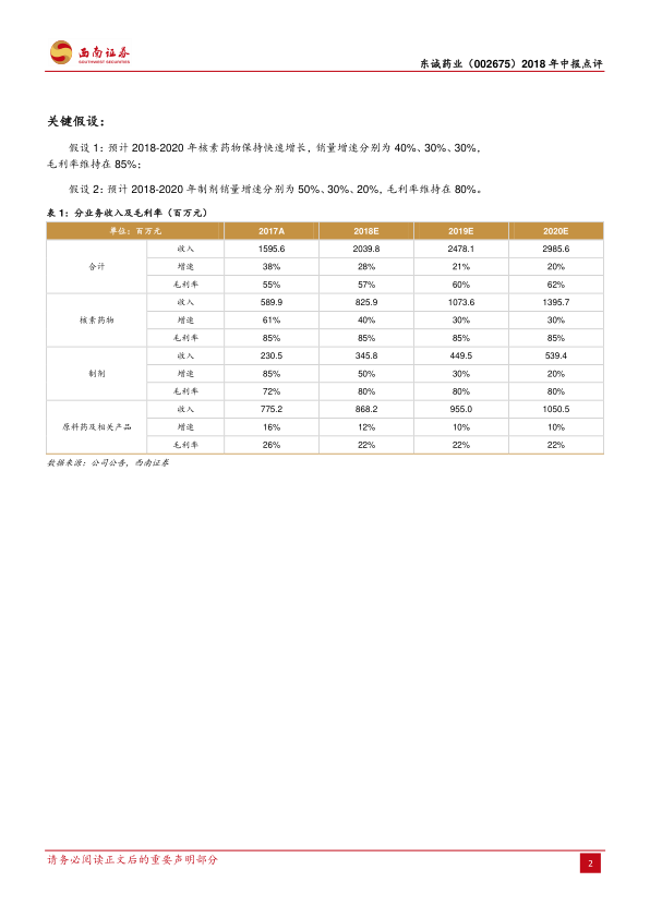 本报告对东诚药业2018年中报进行了解读,核心观点如下: