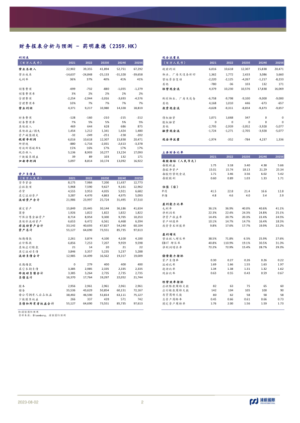 1H23收入增速符合公司指引,利润增速略超预期。2Q/1H23收入+7%/+6%(剔除新冠商业化项目,收入+40%/+28%);Non-IFRS毛利率+3.4pcts至41.6%,其中汇率变动导致毛利率+2.4pcts,效率提升及板块收入结构变动导致+1pcts;Non-IFRS归母净利+22%/+19%。