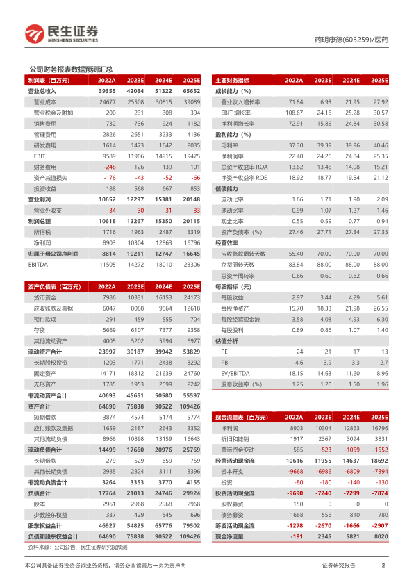 在手订单丰富、长期成长性确定。公司在手订单丰富,截至2023年二季度末在手订单338.95亿元,上半年剔除新冠项目后在手订单同比增长25%,增长动力充足。丰富的在手订单及订单强劲增长是公司未来业绩持续增长的保障,公司预计2023年收入增长5%-7%,维持全年收入指引;经调整non-IFRS毛利增长13%-14%,自由现金流增长750%-850%。