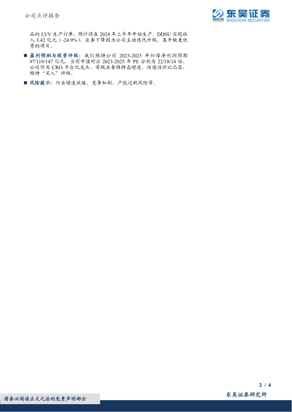 盈利预测与投资评级:我们维持公司2023-2025年归母净利润预期97/119/147亿元,当前市值对应2023-2025年PE分别为22/18/14倍,公司作为CRO平台化龙头,常规业务维持高增速,估值性价比凸显,维持“买入”评级。