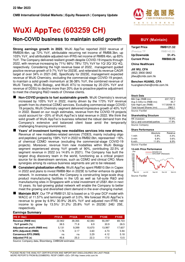 本报告分析了药明康德2022年的强劲业绩,并展望了公司未来的发展前景。核心结论是:
