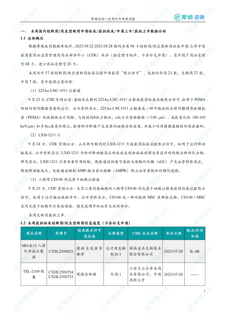 摩熵咨询医药行业观察周报(2025.09.22-2025.09.28)