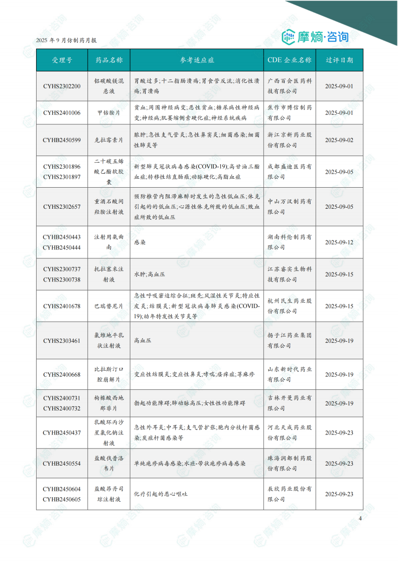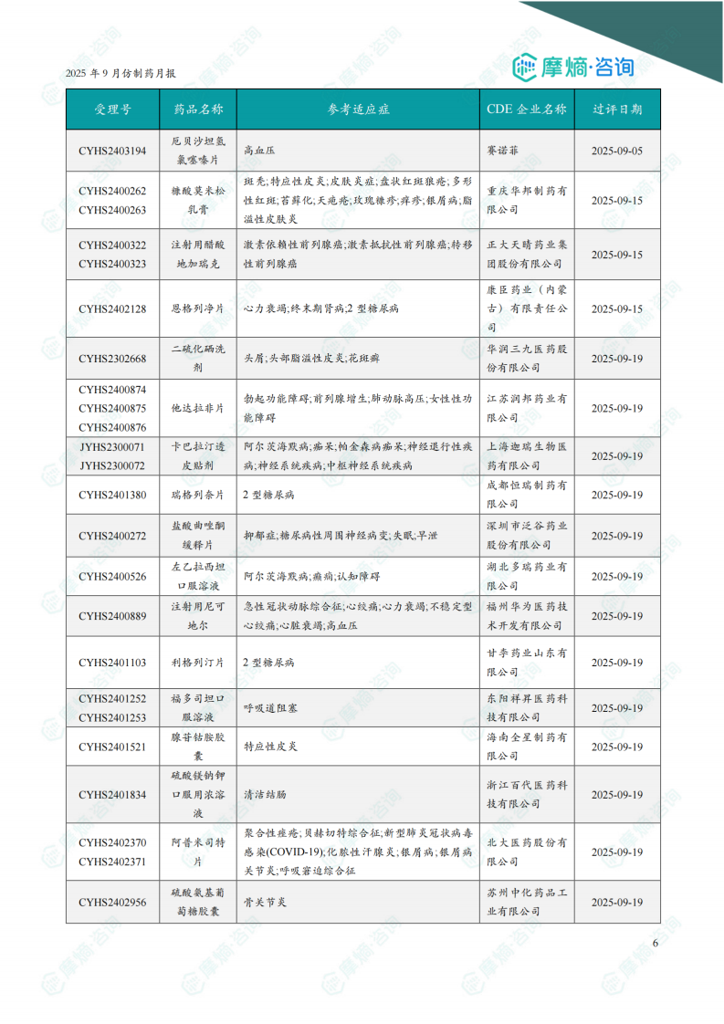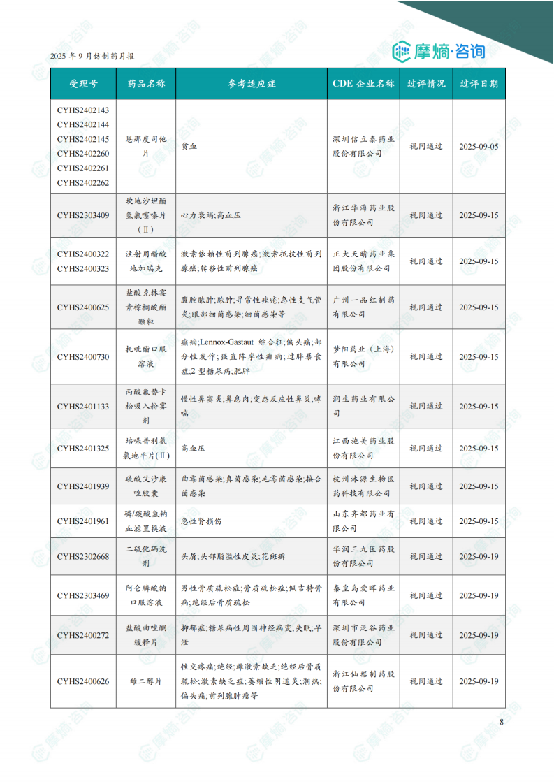 2025年9月仿制药月报