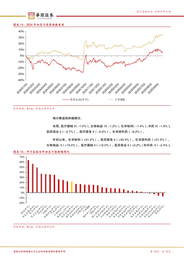 投资观点及建议关注标的:中国医药产业已基本完成了新旧增长动能转换(创新替代仿制,出海能力提升),尤其是创新药显著打开了中国医药企业增长新曲线,具体来看,1)中国创新产业已具规模,恒瑞医药、翰森制药、中国生物制药等传统Pharma已完成创新的华丽转身,百利天恒、科伦博泰等创新药公司正在以全球First-in-class的姿态快速崛起;2)出海能力加速提升,中国药企已成为MNC非常重视的创新转换来源。医疗设备、供应链等已在全球范围内占据较高的地位,在欧美发达市场以及新兴市场持续崭露头角,如联影医疗、华大智造、美好医疗等。需求端和支付端也在持续推动新增量:3)老龄化持续加速,心脑血管、内分泌、骨科等慢性疾病需求持续提升,银发经济长坡厚雪;4)支付端看,医保收支仍在稳健增长,同时医保局积极推动商业保险的发展,构建多层次支付体系;另外,新技术也在加速行业变革:5)AI浪潮下,医药有望释放新的成长逻辑。展望25Q4,继续看好创新药主线,关注三季度业绩开始企稳回升的医疗器械、尤其是医疗设备和家用器械板块,布局2026年行业有望迎来反转的老龄化及院外消费(药店、中药等),同时建议关注估值较低的麻药、血制品等。