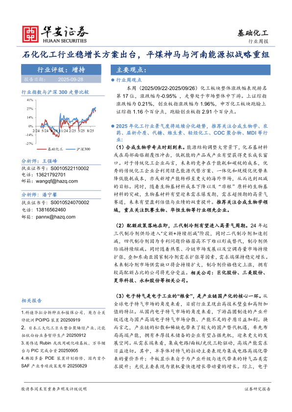基础化工行业周报:石化化工行业稳增长方案出台,平煤神马与河南能源拟战略重组
