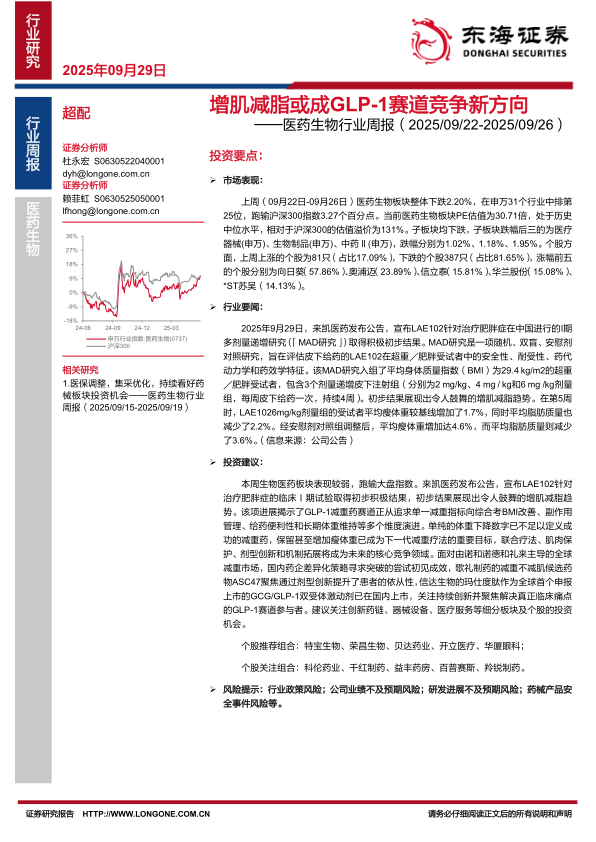 医药生物行业周报:增肌减脂或成GLP-1赛道竞争新方向