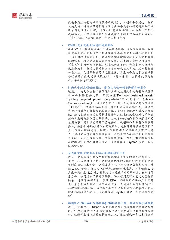 华安证券化工团队发表的《合成生物学周报》是一份面向一级市场、二级市场,汇总国内外合成生物学相关领域企业信息的行业周报。