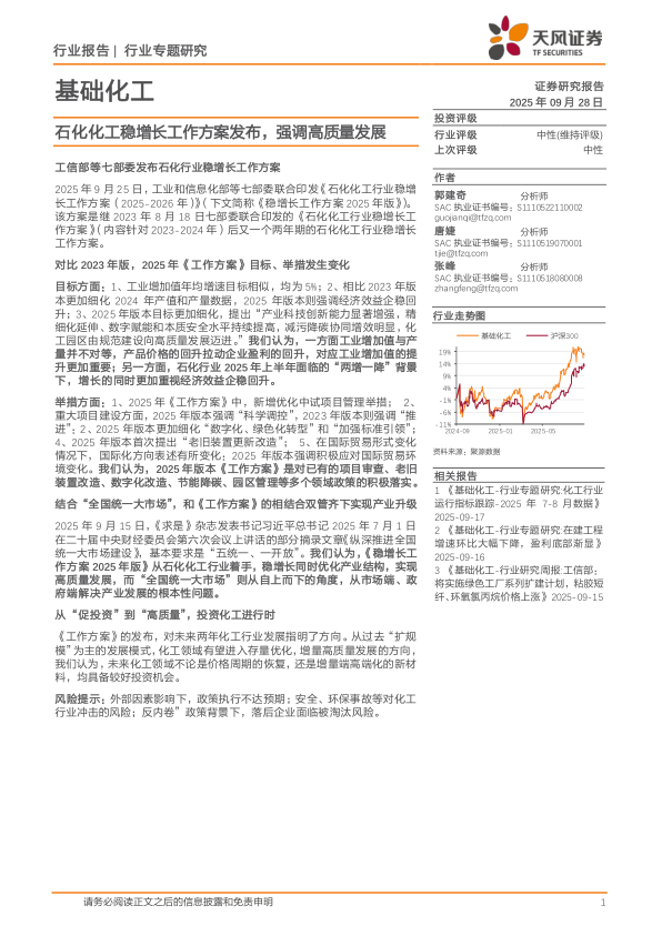 基础化工行业专题研究:石化化工稳增长工作方案发布,强调高质量发展