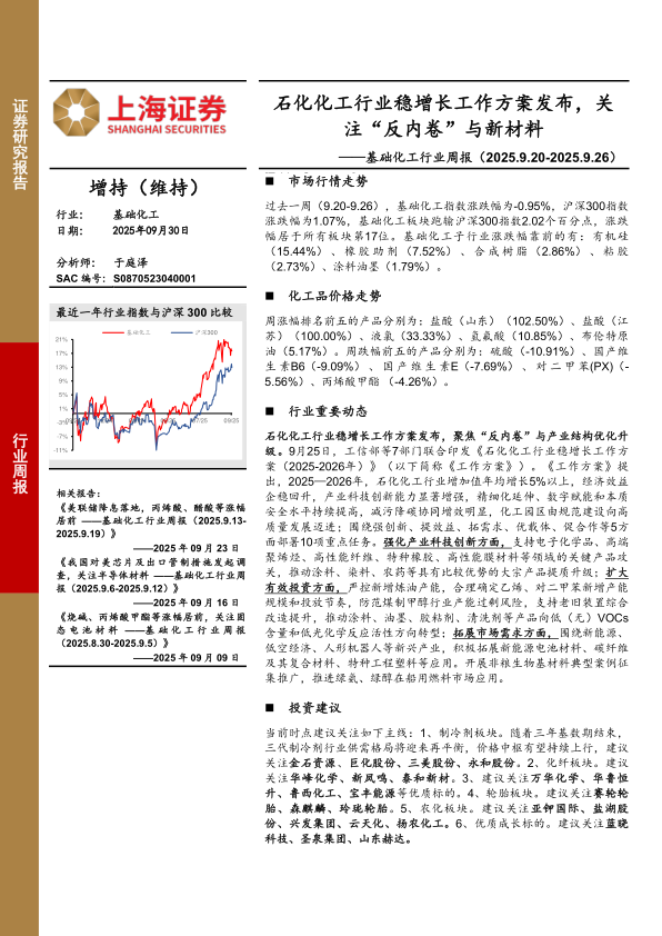 基础化工行业周报:石化化工行业稳增长工作方案发布,关注“反内卷”与新材料