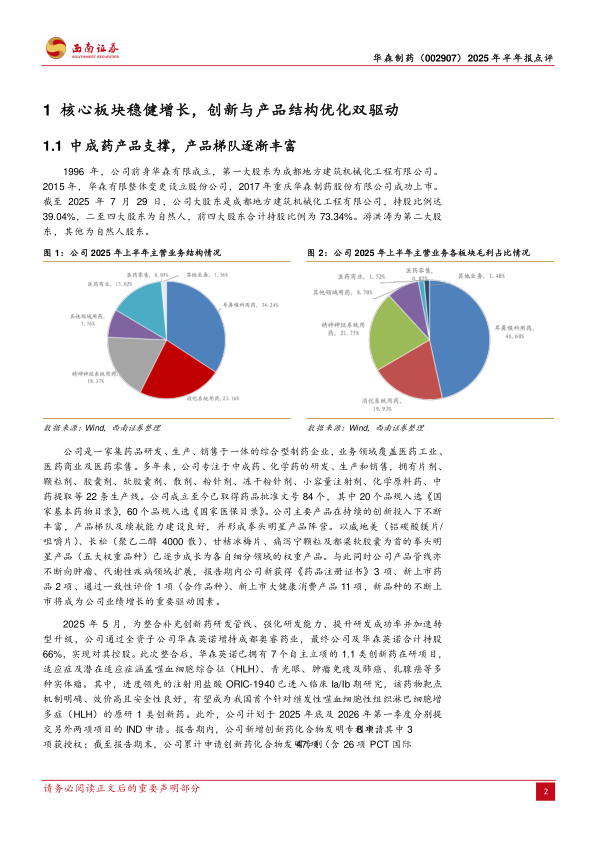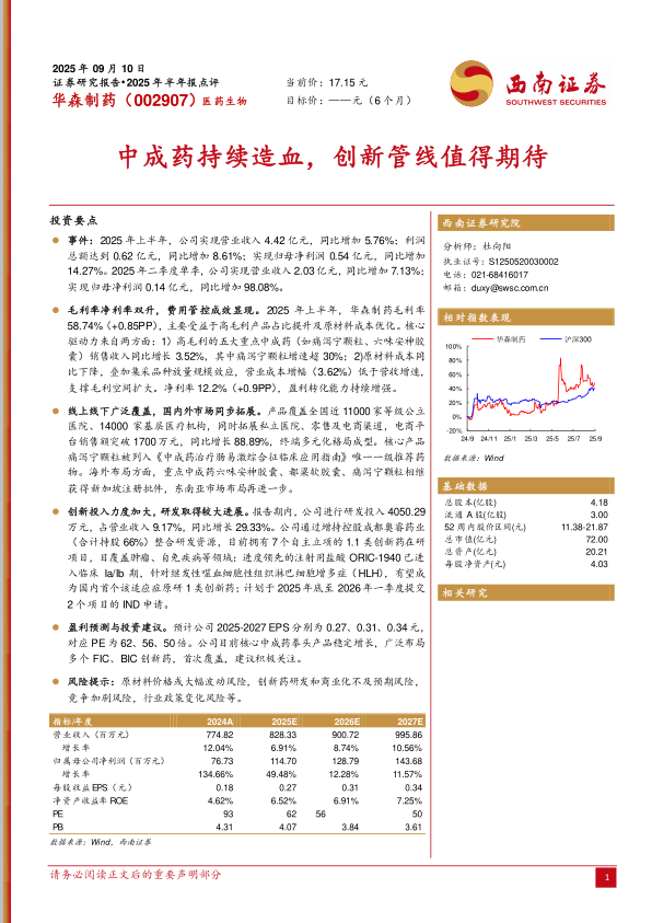 本报告通过对华森制药2025年半年报的详细分析,认为公司在中成药业务稳健增长的基础上,积极推进创新转型战略,盈利能力持续提升。