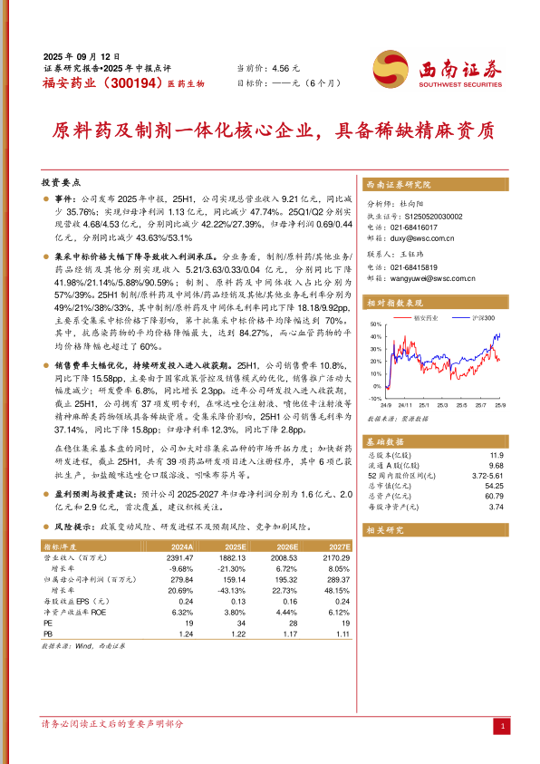 本报告对福安药业(300194)2025年中报进行了深度分析,核心观点如下: