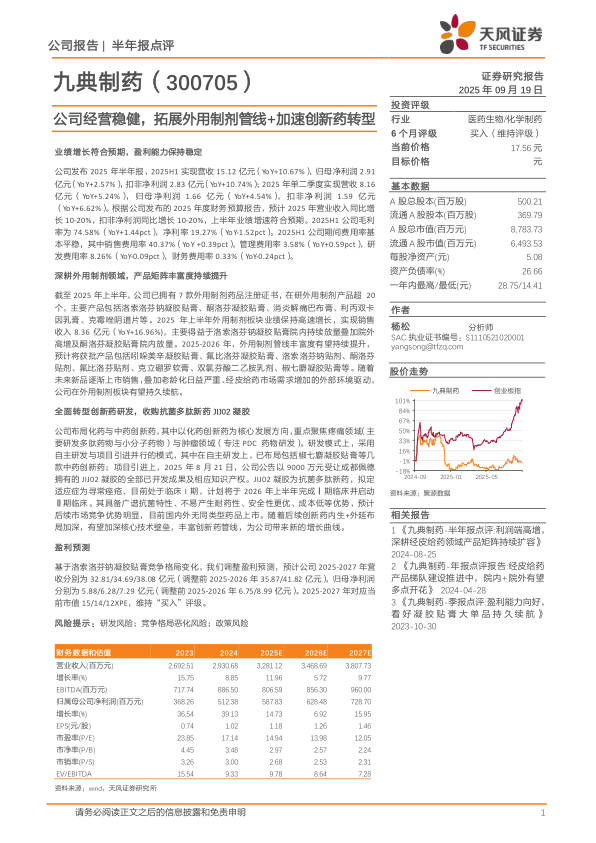 九典制药(300705)