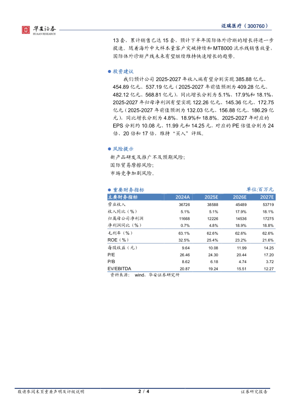 本报告对迈瑞医疗2025年半年度业绩进行了分析,并对公司未来发展前景进行了展望。