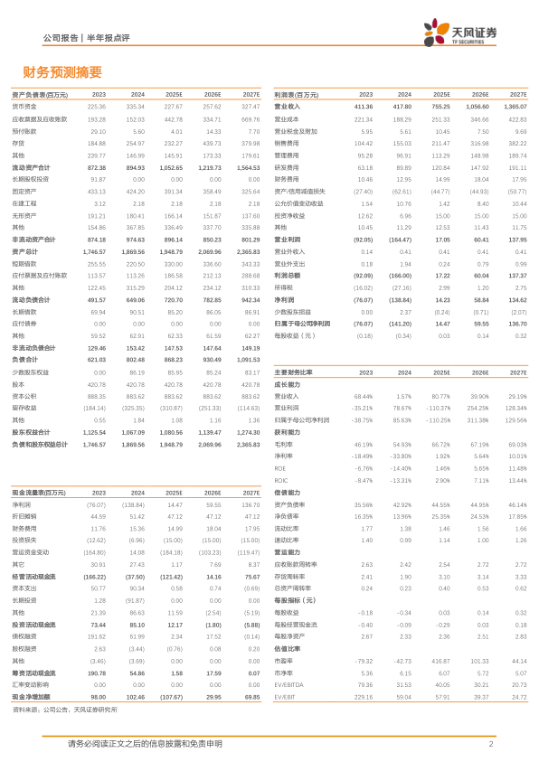 考虑到公司本次合并了南大药业带来的收益以及HIV新药业务持续放量,我们将公司2025-2027年的营业收入从7.32亿元、10.22、12.35亿元上调至7.55、10.57和13.65亿元;将公司2025-2027年的预期归母净利润从-0.10、0.37和0.79亿元上调至0.14、0.60和1.37亿元。维持“买入”评级。