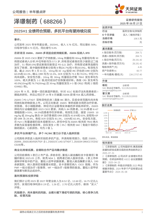 泽璟制药(688266)
