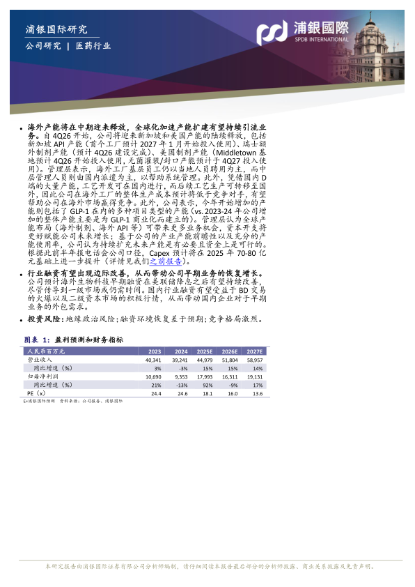 行业融资有望出现边际改善,从而带动公司早期业务的恢复增长。公司预计海外生物科技早期融资在美联储降息之后有望持续改善,尽管传导到一级市场或仍需时间。国内行业融资有望受益于BD交易的火爆以及二级资本市场的积极行情,从而带动国内企业对于早期业务的外包需求。