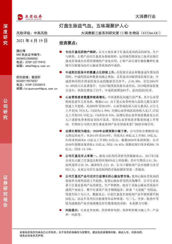大消费新三板系列研究第12期-生物谷:灯盏生脉益气血,五味凝聚护人心