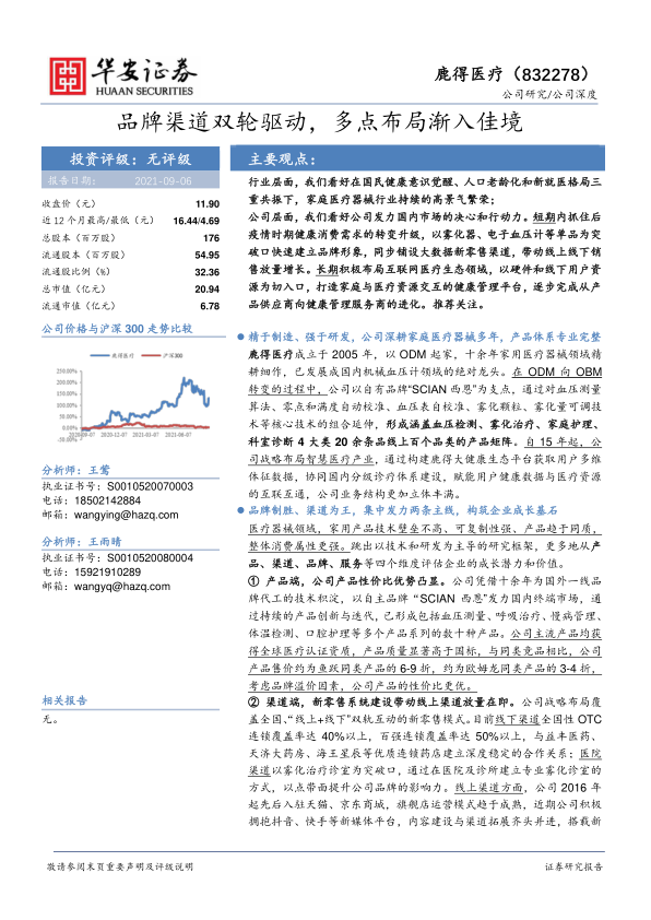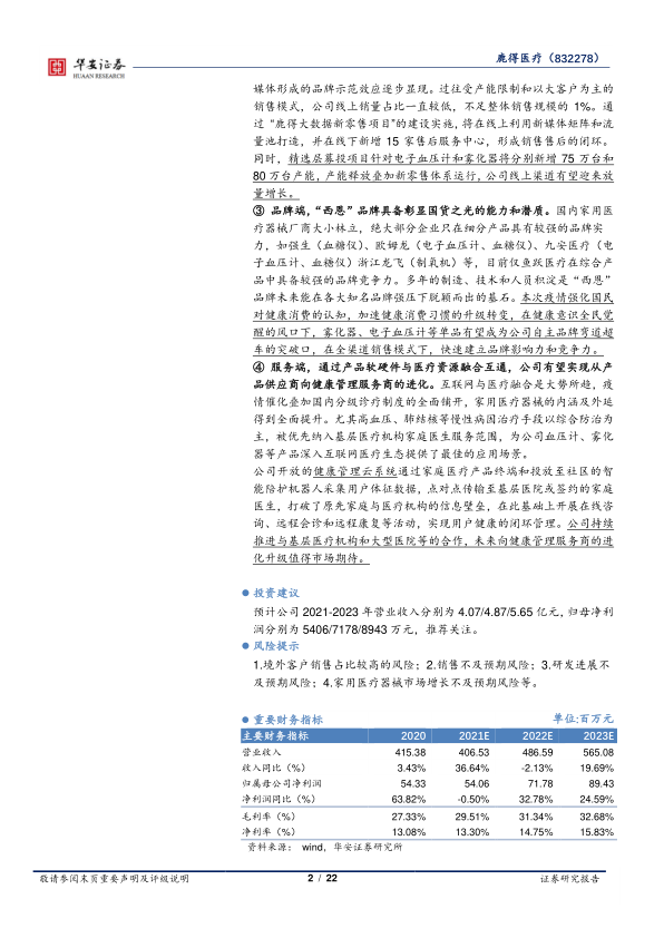 公司层面,我们看好公司发力国内市场的决心和行动力。短期内抓住后疫情时期健康消费需求的转变升级,以雾化器、电子血压计等单品为突破口快速建立品牌形象,同步铺设大数据新零售渠道,带动线上线下销售放量增长。长期积极布局互联网医疗生态领域,以硬件和线下用户资源为切入口,打造家庭与医疗资源交互的健康管理平台,逐步完成从产品供应商向健康管理服务商的进化。推荐关注。