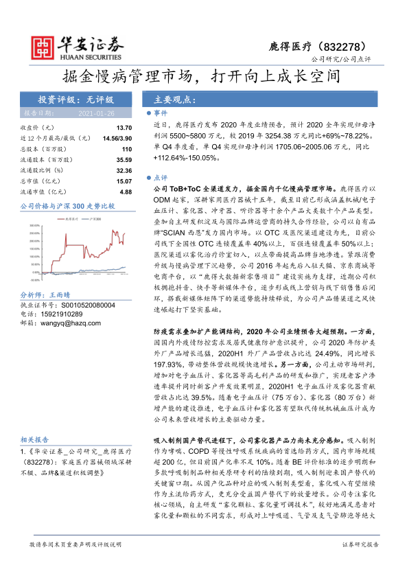 鹿得医疗凭借ToB+ToC全渠道策略,积极拓展国内慢病管理市场,业绩增长超预期。受益于防疫需求和扩产能调结构,公司未来增长潜力巨大,尤其是在吸入制剂国产替代的背景下,雾化器产品有望迎来更大的发展机遇。