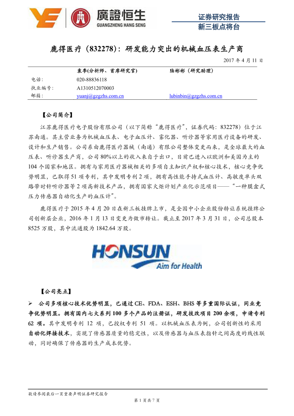 广州广证恒生证券研究所有限公司最新报告