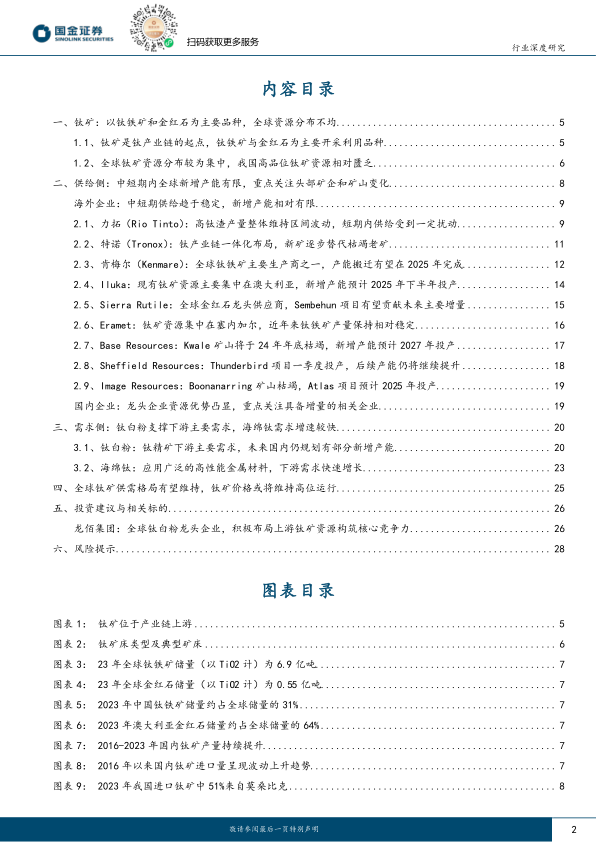 钛矿是钛产业链的起点,具备较强的资源属性,钛铁矿与金红石是目前开采利用的主要钛矿品种。