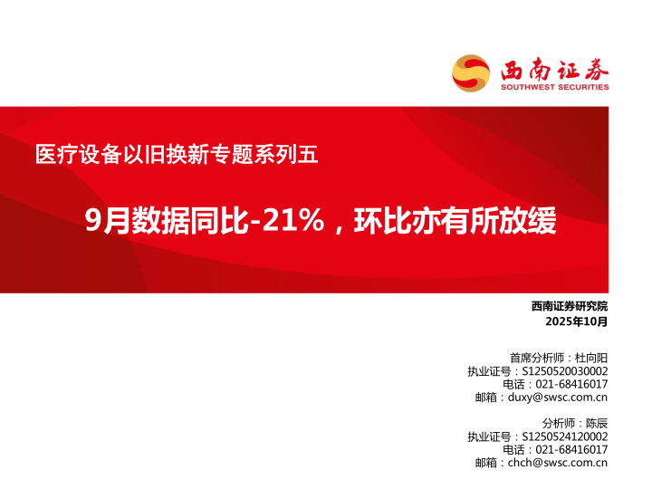 医疗设备以旧换新专题系列五:9月数据同比-21%,环比亦有所放缓