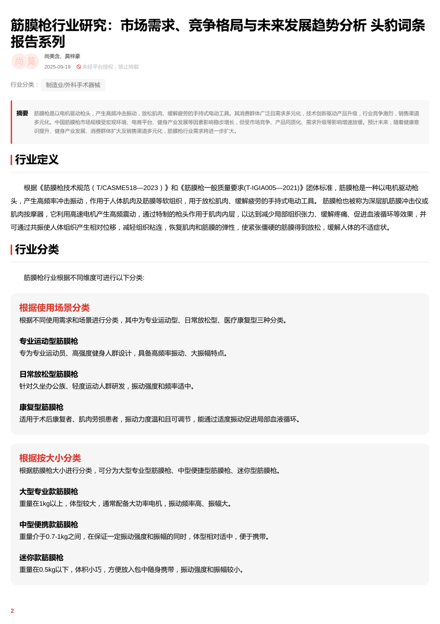筋膜枪行业研究:市场需求、竞争格局与未来发展趋势分析 头豹词条报告系列
