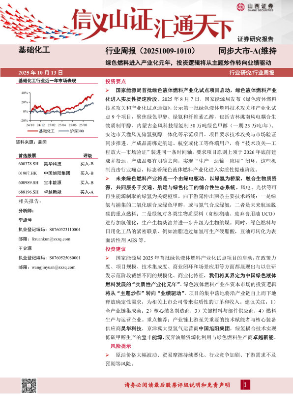 基础化工行业周报:绿色燃料进入产业化元年,投资逻辑将从主题炒作转向业绩驱动