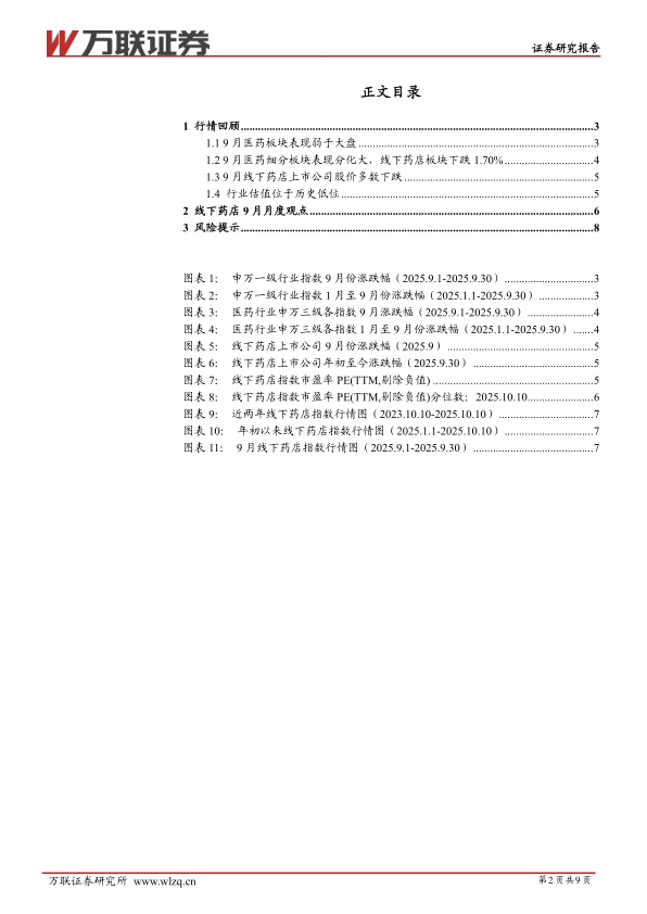 9月线下药店板块表现弱于大盘,主要因为行业在医保政策承压、集采等政策环境下尚处于修复状态,行业供给侧出清加速、企业聚焦提升单个门店经营效率,长期利好行业健康发展。在行业集中度提升,处方外流趋势下,关注企业经营基本面改善情况。