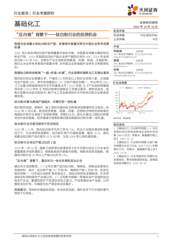 基础化工行业专题研究:钛白粉行业的投资机会-“反内卷”背景下