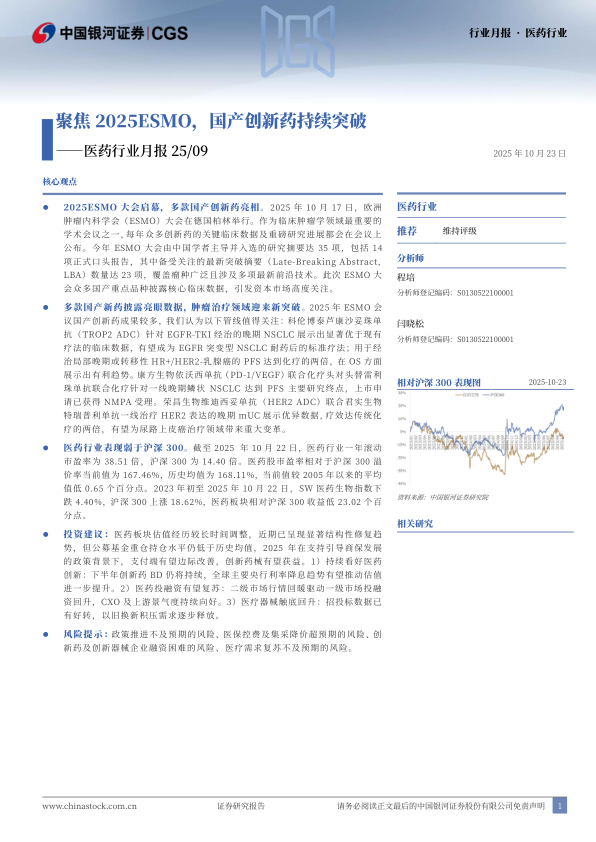 医药行业月报25/09:聚焦2025ESMO,国产创新药持续突破