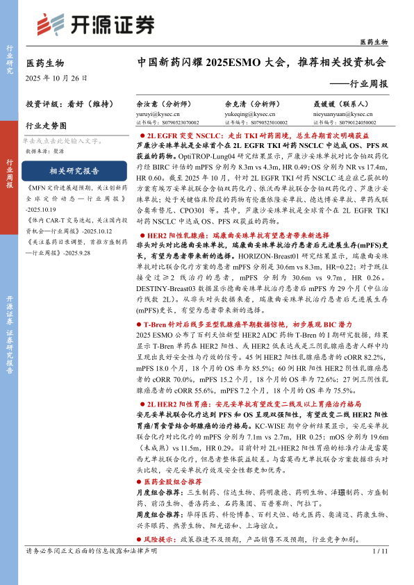 医药行业周报:中国新药闪耀2025ESMO大会,推荐相关投资机会