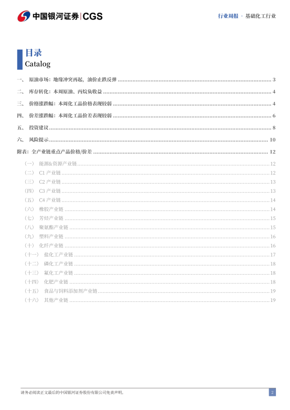 基础化工行业周报 · 基础化工行业:化工品价格表现偏强,关注周期弹性机会