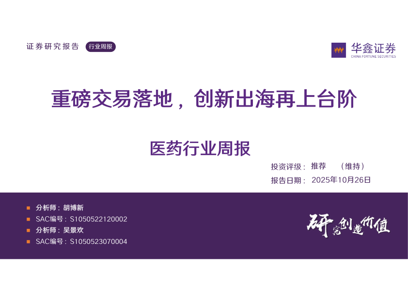 医药行业周报:重磅交易落地,创新出海再上台阶