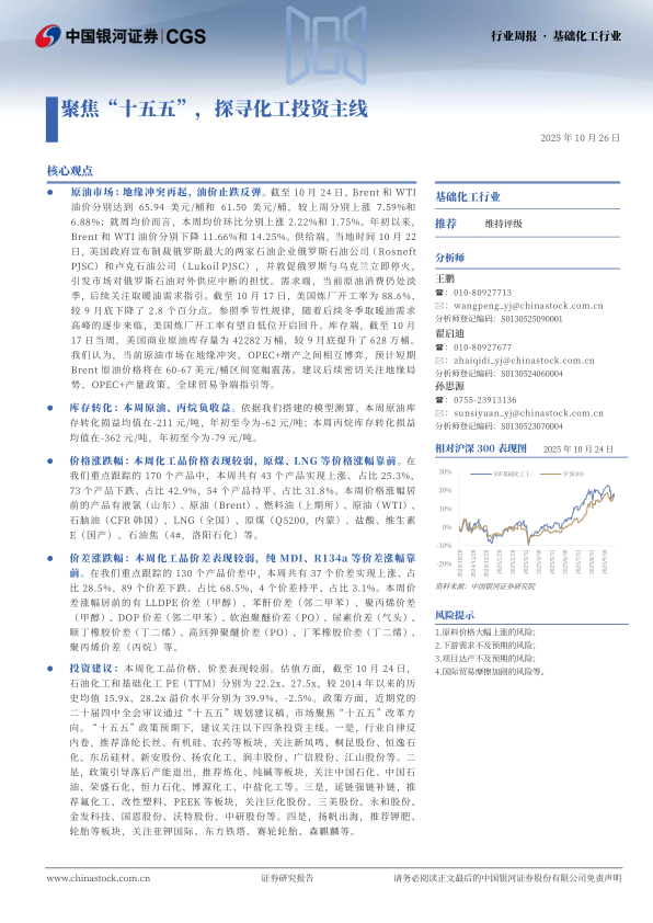 基础化工行业行业周报:聚焦“十五五”,探寻化工投资主线