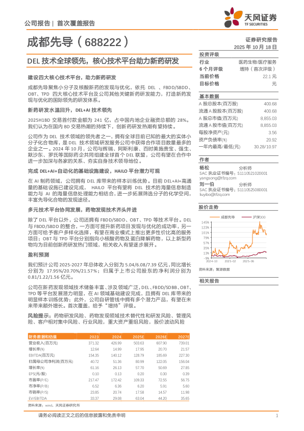 公司在新药发现领域技术储备丰富、涉及领域广泛,DEL、FBDD/SDBB、OBT、TPD等平台发展潜力明显,在AI领域基础建设完成,且拥有DEL库带来的明显样本训练优势;此外,公司自研管线中拥有多个潜力产品,有望在未来带来额外增长。首次覆盖,给予“增持”评级。