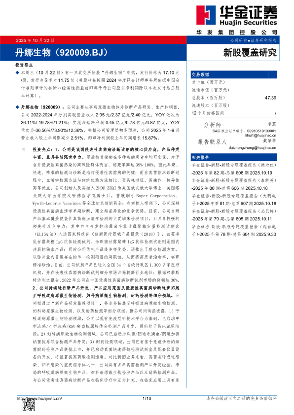 新股覆盖研究:丹娜生物