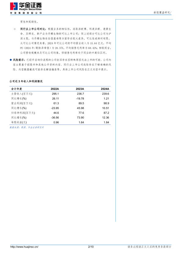 投资亮点:1、公司是我国侵袭性真菌病诊断试剂的核心供应商,产品种类丰富、且具备较强竞争力。侵袭性真菌病在多种疾病患者中均可出现,对于合并侵袭性真菌感染的高风险群体而言,病死率高达39%-100%,因此早期、快速、精准的检测与诊断是治疗侵袭性真菌病的关键;而在真菌临床诊断过程中,血清学检测方法与传统检测方法相比,更具耗时短、易操作、特异性高等优点。公司创始人及实控人ZHOU ZEQI为美国俄亥俄大学博士、美国塔夫茨大学医学院及哈佛医学院博士后,曾就职于Bayer Corporation、Wyeth-Lederle Vaccines等全球知名创新药企;在实控人带领下,公司深耕侵袭性真菌病血清学早期诊断,建立起差异化的竞争优势。目前,公司自研产品基本覆盖侵袭性真菌病血清学检测的主要临床检测项目,且具备较强的领先性及竞争力;其中自主开发的曲霉菌半乳甘露聚糖定量检测试剂盒(ELISA法)入选国家科技部《创新医疗器械产品目录(2018)》,曲霉半乳甘露聚糖IgG抗体检测试剂、念珠菌甘露聚糖IgG抗体检测试剂则是国内注册的独家产品;同时公司依托产品线多样优势,还推出了联合检测方案,以弥补业内普遍存在的单一检测项目的局限性,从而提高患者治愈率、实现精准诊治。目前,公司试剂产品已进入全国34个省级行政区1,300多家医疗机构,并在侵袭性真菌病诊断试剂细分市场占据较高行业地位;根据弗若斯特沙利文报告,2022年公司在中国侵袭性真菌病诊断试剂市场的份额达30%。2、公司持续进行新产品开发,产品应用范围从侵袭性真菌病诊断逐步拓展至呼吸道病原微生物检测、妇科病原微生物检测、耐药检测等细分领域。公司拟通过“新产品研发募投项目”,将业务拓展至呼吸道病原微生物检测、妇科病原微生物检测、以及耐药检测等细分领域。据公司问询函披露,1)呼吸道病原微生物检测领域,公司以现有免疫层析技术平台为基础,已启动甲型流感/乙型流感/RSV病毒抗原胶体金检测产品开发,目前处于临床试验阶段;2)妇科病原微生物检测领域,公司已启动念珠菌/阴道毛滴虫/阴道加德纳菌抗原联合检测产品开发;3)耐药检测领域,公司已有基于免疫诊断的细菌耐药检测产品获批上市,并已启动真菌快速药敏检测试剂盒及配套仪器设备的开发,将显著提高药敏检测速度。对比新旧业务来看,真菌是呼吸道感染、妇科感染的重要病原体之一;公司具有多年真菌检测产品开发经验,布局的呼吸道病原微生物产品、妇科病原微生物检测产品以及耐药检测产品,与公司侵袭性真菌病诊断产品在临床诊疗中互为补充、在临床应用上具有连贯性和延续性。