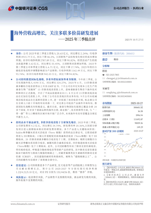 2025年三季报点评:海外营收高增长,关注多联多价苗研发进展