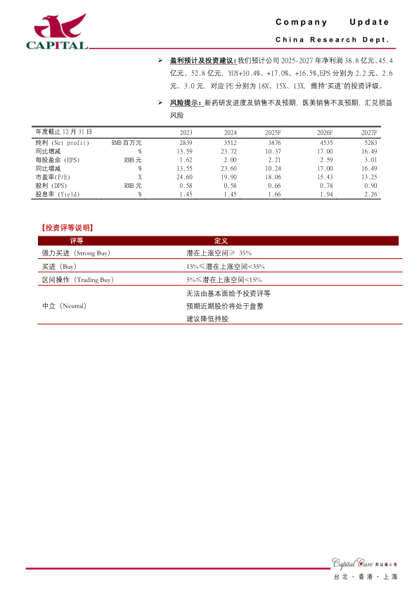 风险提示:新药研发进度及销售不及预期,医美销售不及预期,汇兑损益风险