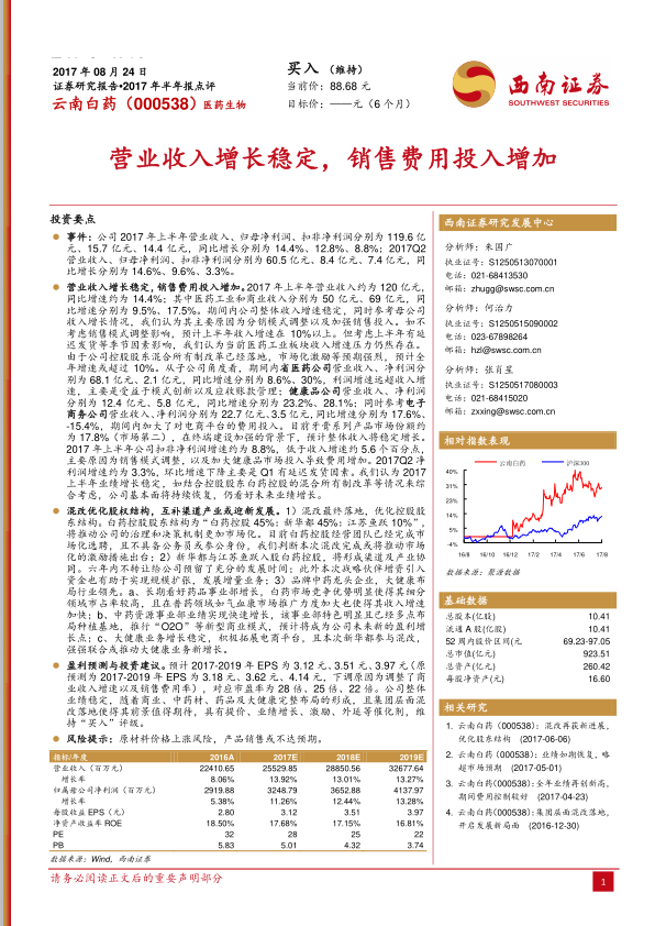 营业收入增长稳定,销售费用投入增加