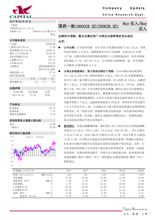 业绩符合预期,整合后奠定两广分销及全国零售的龙头地位