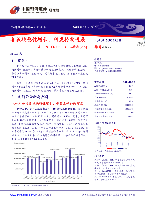三季报点评:各版块稳健增长,研发持续进展