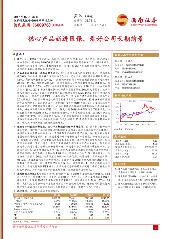 2016年年报点评:核心产品新进医保,看好公司长期前景