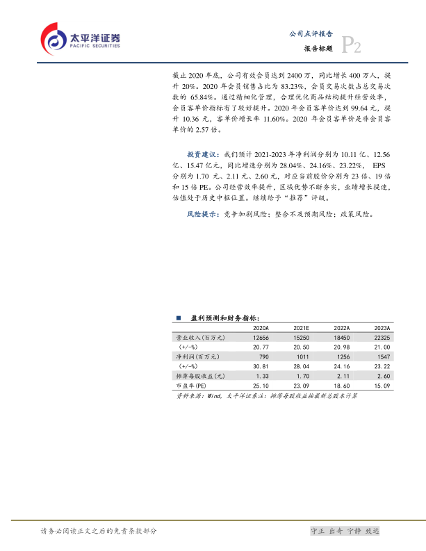 投资建议:我们预计2021-2023年净利润分别为10.11亿、12.56亿、15.47亿元,同比增速分别为28.04%、24.16%、23.22%,EPS分别为1.70元、2.11元、2.60元,对应当前股价分别为23倍、19倍和15倍PE。公司经营效率提升,区域优势不断夯实,业绩增长提速,估值处于历史中枢位置。继续给予“推荐”评级。
