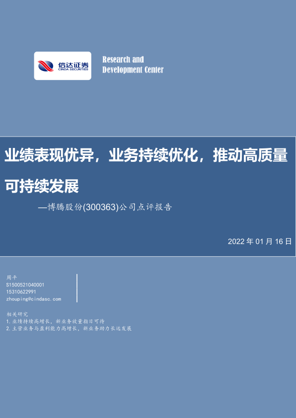 公司点评报告:业绩表现优异,业务持续优化,推动高质量可持续发展