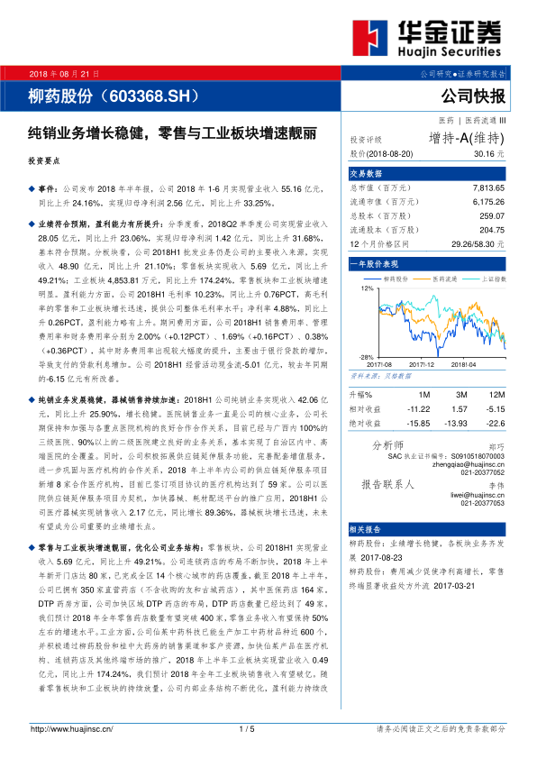纯销业务增长稳健,零售与工业板块增速靓丽