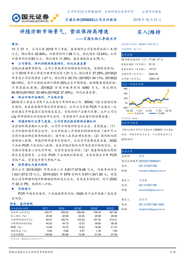 艾德生物三季报点评:伴随诊断市场景气,营收保持高增速