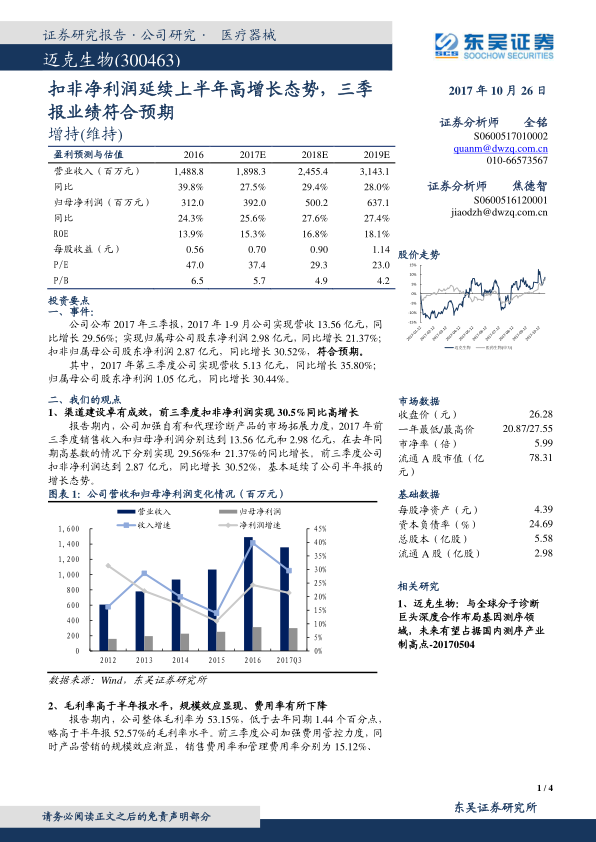 扣非净利润延续上半年高增长态势,三季报业绩符合预期
