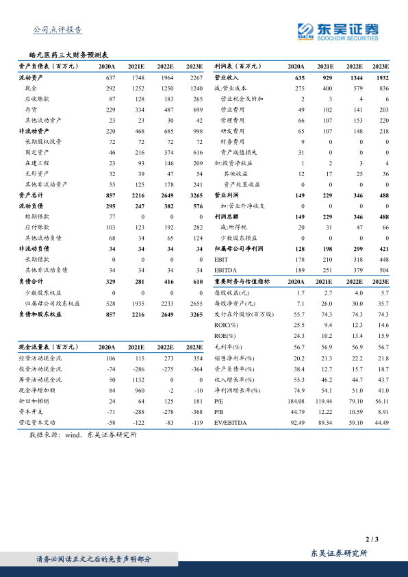 自建产能未来落地,公司CDMO业务有望加速发展。公司投建的安徽皓元年产121.095吨医药原料药及中间体建设项目进展顺利。公司预计其马鞍山工厂将于2022年年中投产,2-3年后达产。未来新增产能将增强公司的生产规模和竞争优势。尤其在ADC药物方面,公司在相关的研发、工艺优化、工艺验证、注册申报、产业化环节具有较强的能力和丰富的项目研发经验。在皓元医药与荣昌生物合作的RC48上市形成示范效应后,我们预计产能扩张+ADC药物CDMO的相关订单有望促进公司CDMO业务的加快发展。